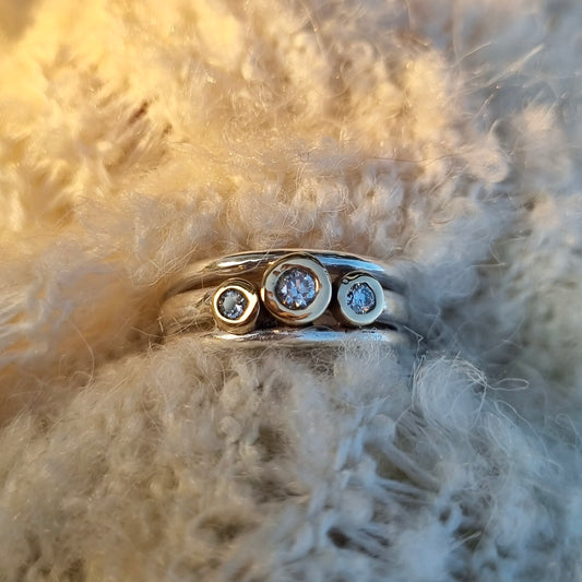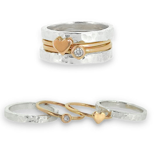 'Eternal Love' stacking set with extra diamond. Gold, silver and two diamond rings