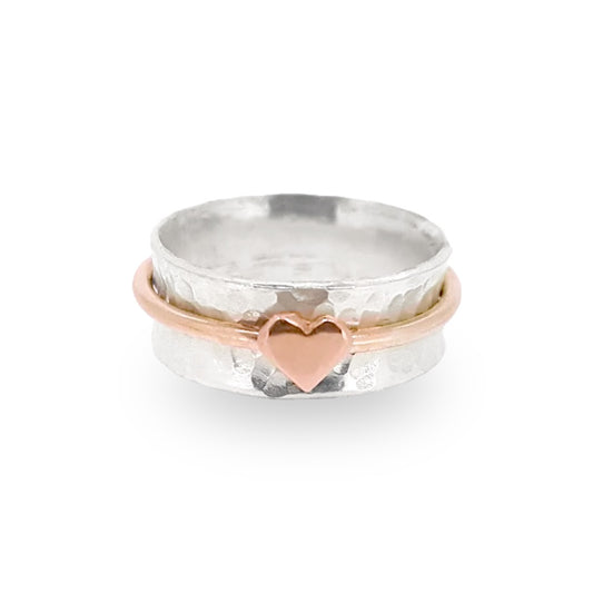 'One Love'. Sterling silver spinning ring with solid gold heart.