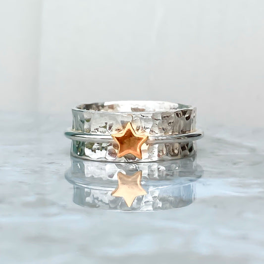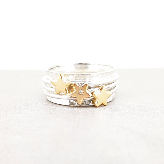 'It's in the stars' - spinning ring with diamonds set in three gold stars