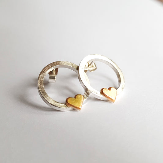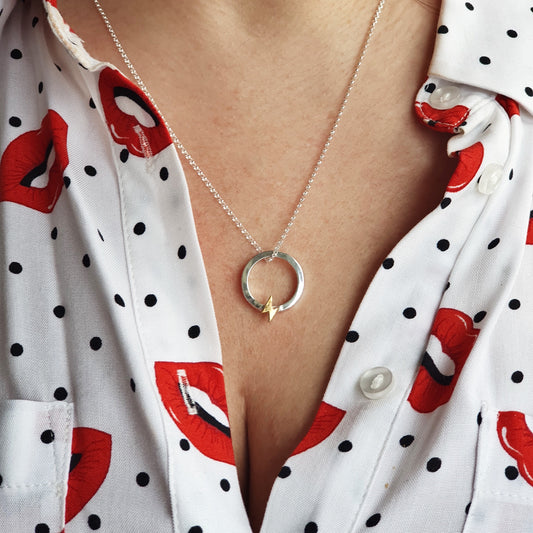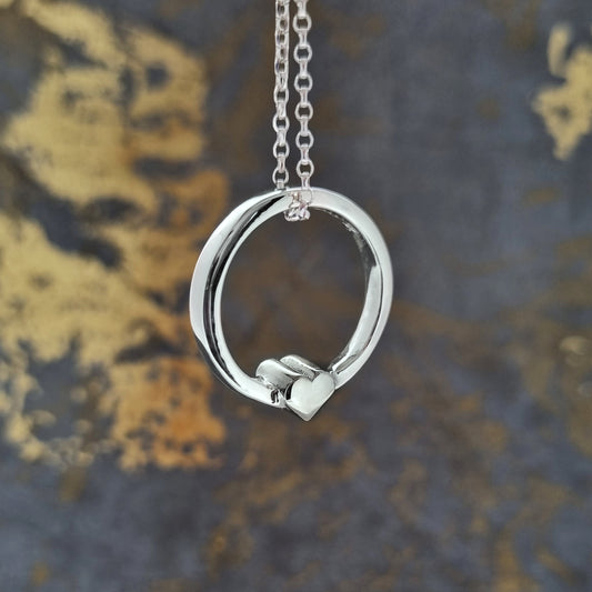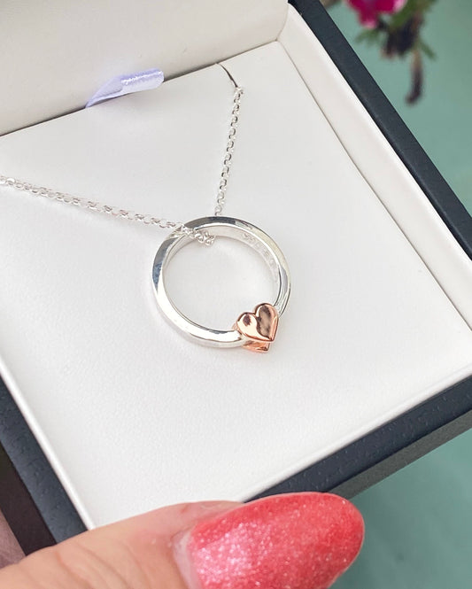 ‘One love’ with a hoop - necklace with solid gold or silver heart