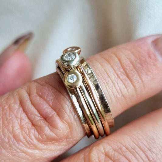 'Scrumdiddlyumptious' - gold rings set with diamonds.