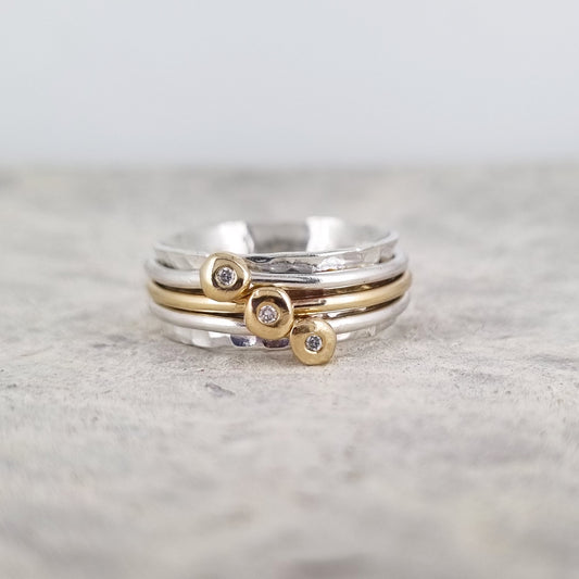 Mini 'Cariad' spinning ring handmade with solid gold, silver and diamonds
