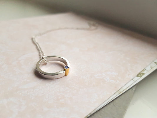 ‘One love’ with a hoop - necklace with solid gold or silver heart