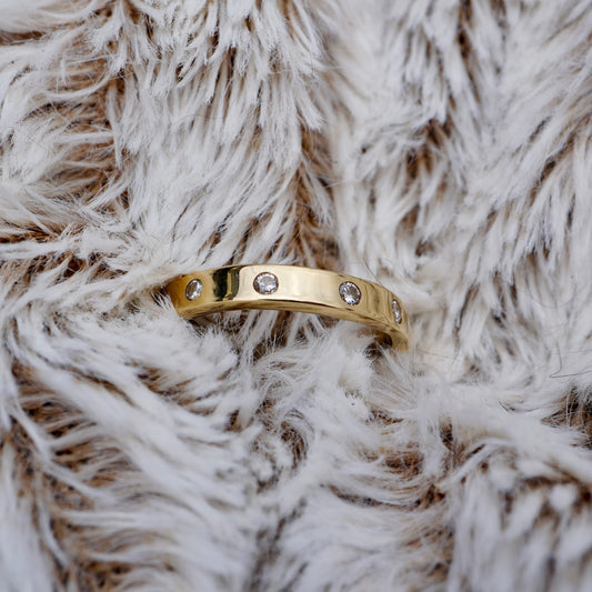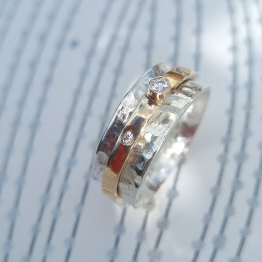 'Cariad' lite - Gold and big diamonds on a sleek silver ring