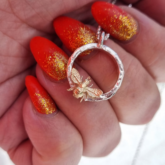 Special listing - Silver halo with tiny solid gold bee - necklace