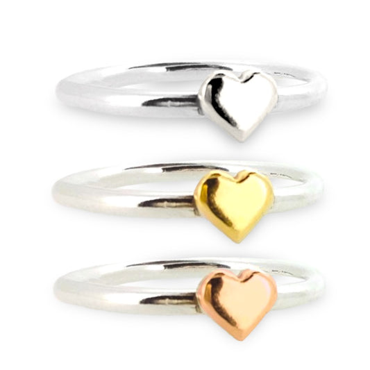'Eternal love'. Solid silver ring set with gold heart and diamond.