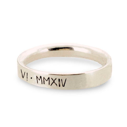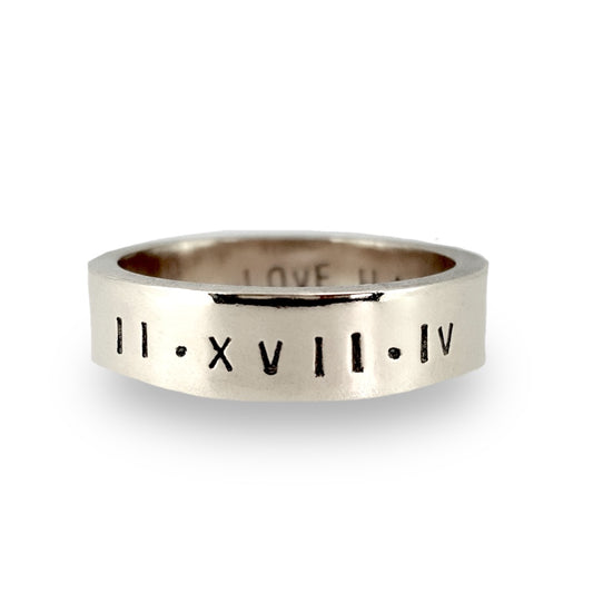 Personalised ladies' ring with Roman numerals. 9ct solid gold