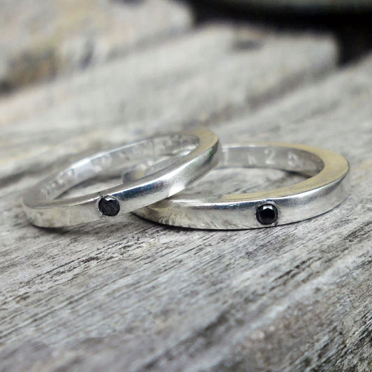 Silver wedding bands set with black diamonds