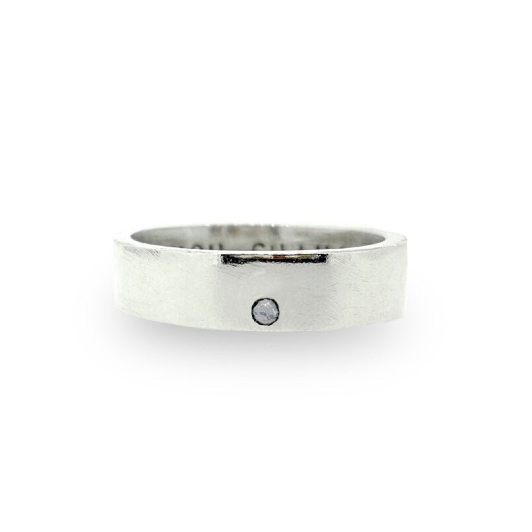 Handmade from solid sterling silver, at 6mm wide by 2mm thick it's got a nice heavy feel. You can choose either a polished finish or a matt, brushed finish, and add an optional conflict-free 2mm diamond.