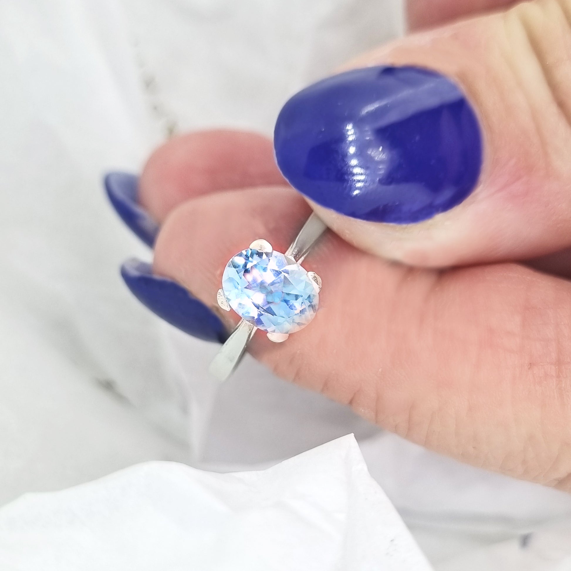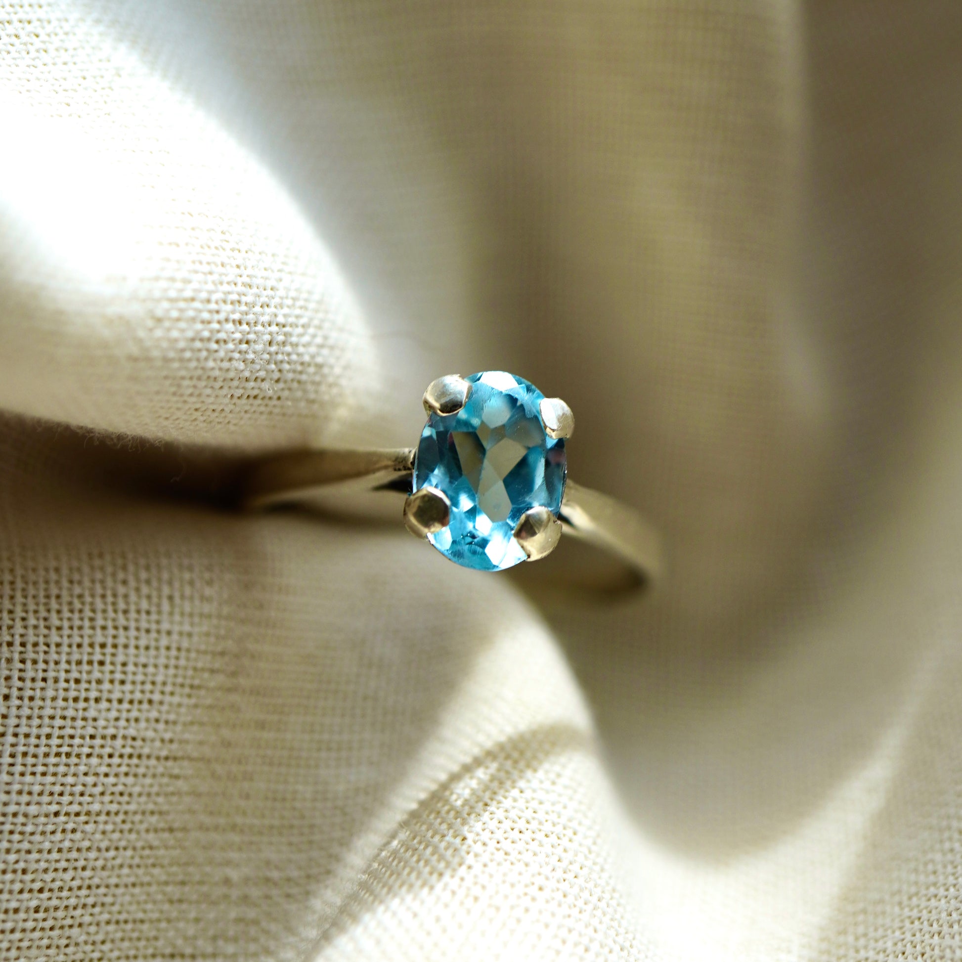 The hero of this ring is the stone, so I don't complicate it - just a simple sterling silver band holding a breathtaking 8mm x 6mm oval topaz. I set the stone by hand in a double gallery collet made from the same silver.