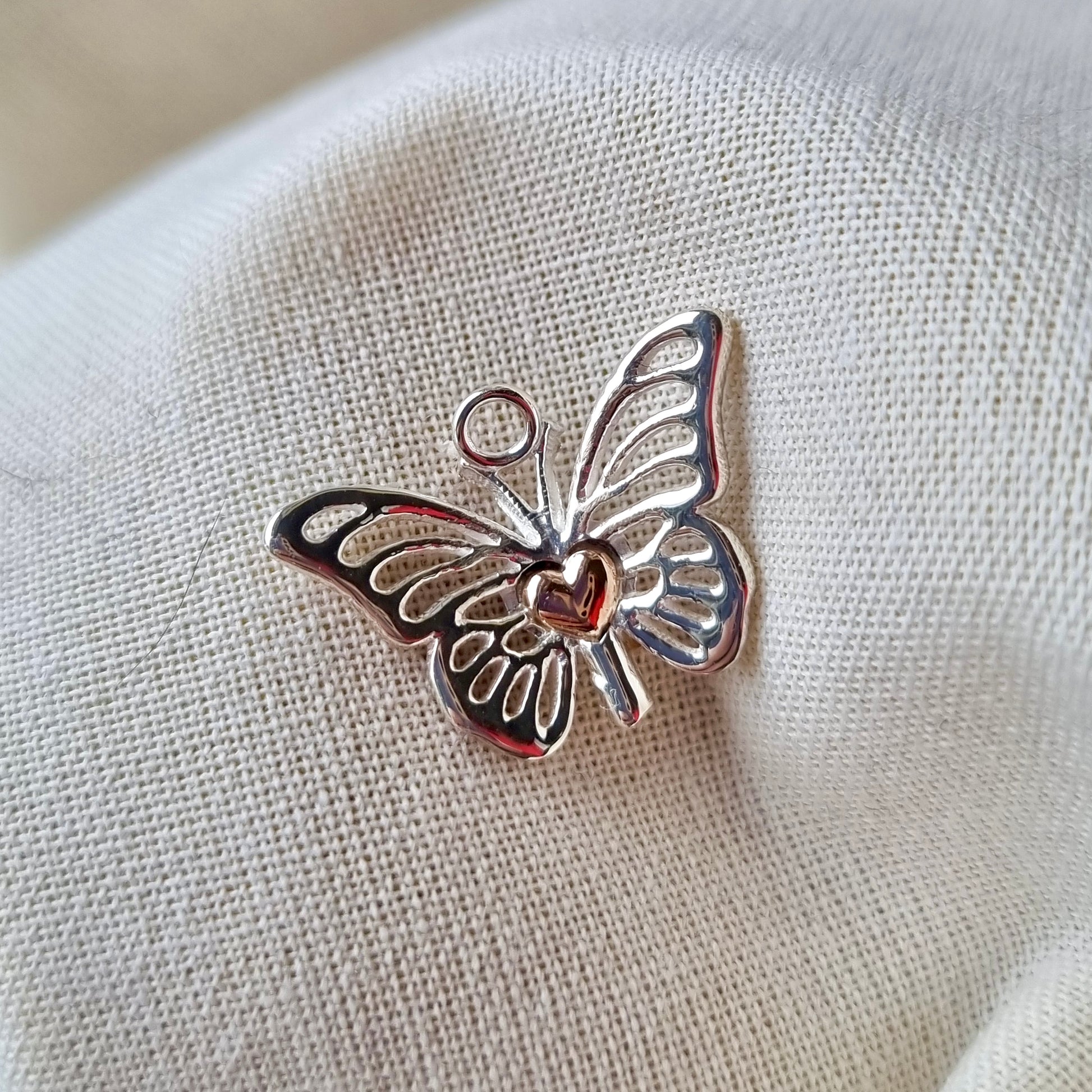 FlutterHeart is the perfect necklace to welcome the season of fresh beginnings and warm breezes. Handcrafted in sterling silver, each delicate butterfly flutters with grace, its wings gently carrying a tiny golden heart at the centre. The butterfly measures 20mm across its wings.