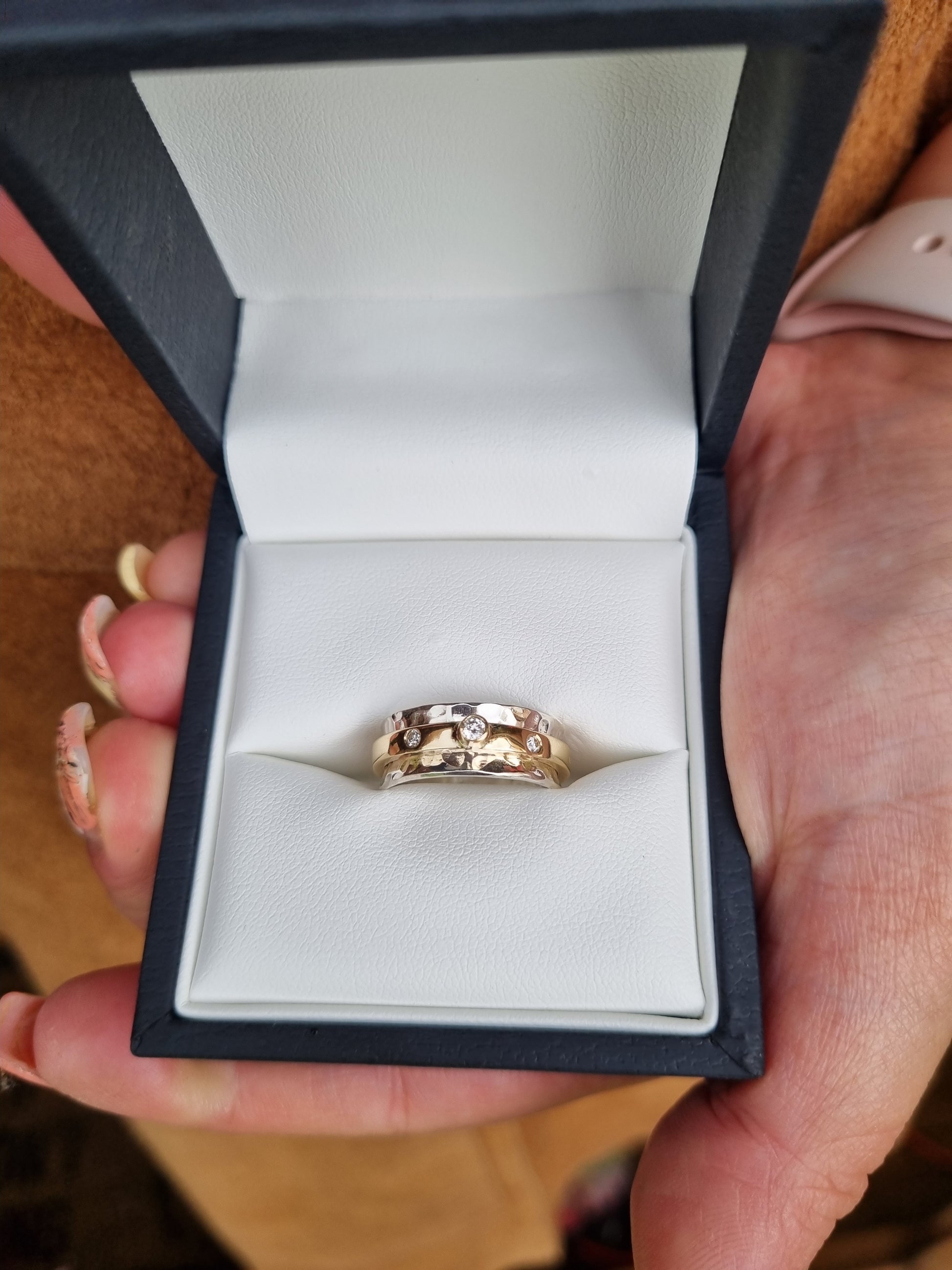 I make this ring entirely by hand in my workshop, and this means I can make special variations and tailor the ring exactly to you. As an extra free service I can also stamp a message inside the ring. This will be inside the gold ring of Forever, and the silver inner ring with Forever More.