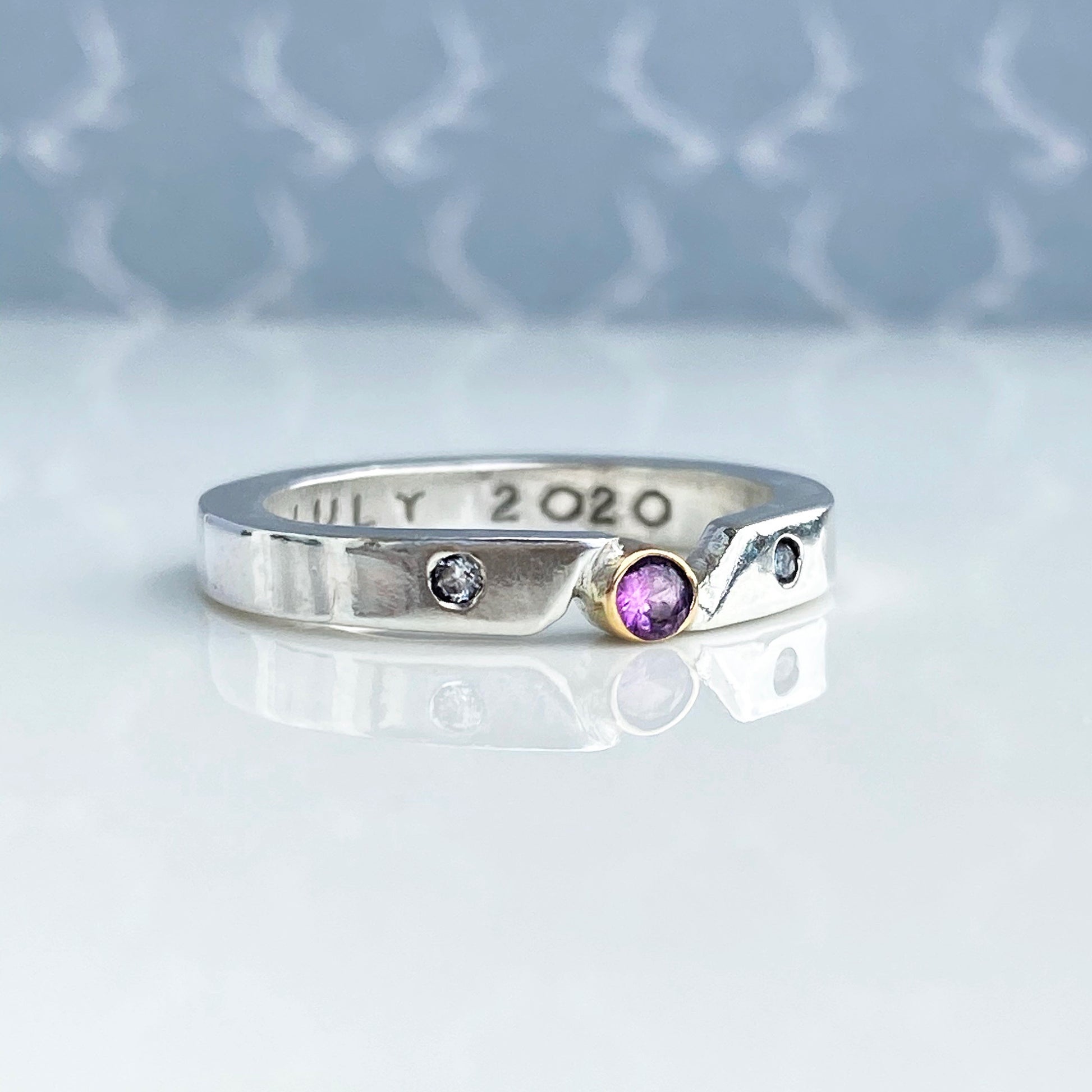 As with most of my jewellery, I can personalise this ring with a name, date or other words hand-stamped inside the ring at no extra charge. You can have any message you want that makes the ring special to you, up to a maximum of 20 letters. Just let me know in the 'personalisation & extra info" box when you order.
