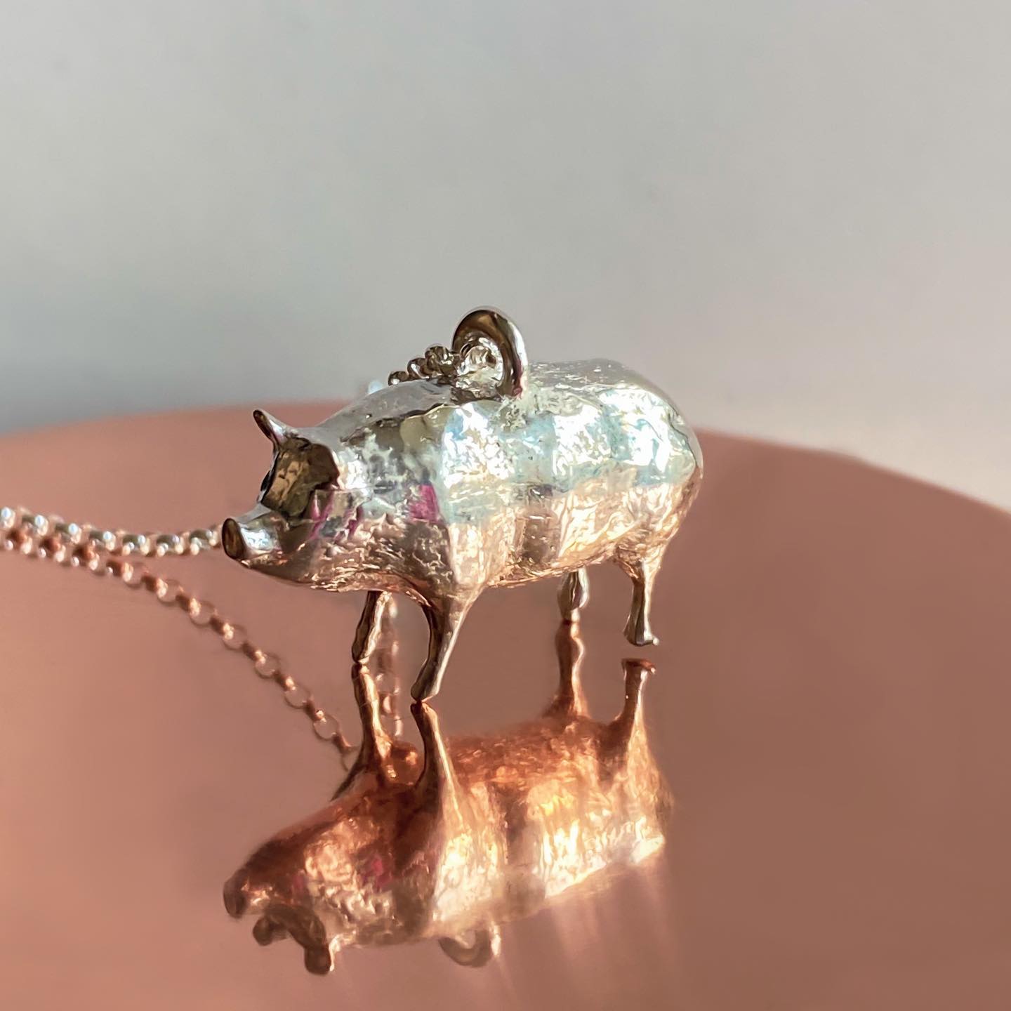 Who doesn't love piggies? The silver version is gorgeous pig is reassuringly heavy at about 14g, and measures 25mm from the tip of his nose to the end of his tail. He's hand-cast from solid sterling silver, from my original design.