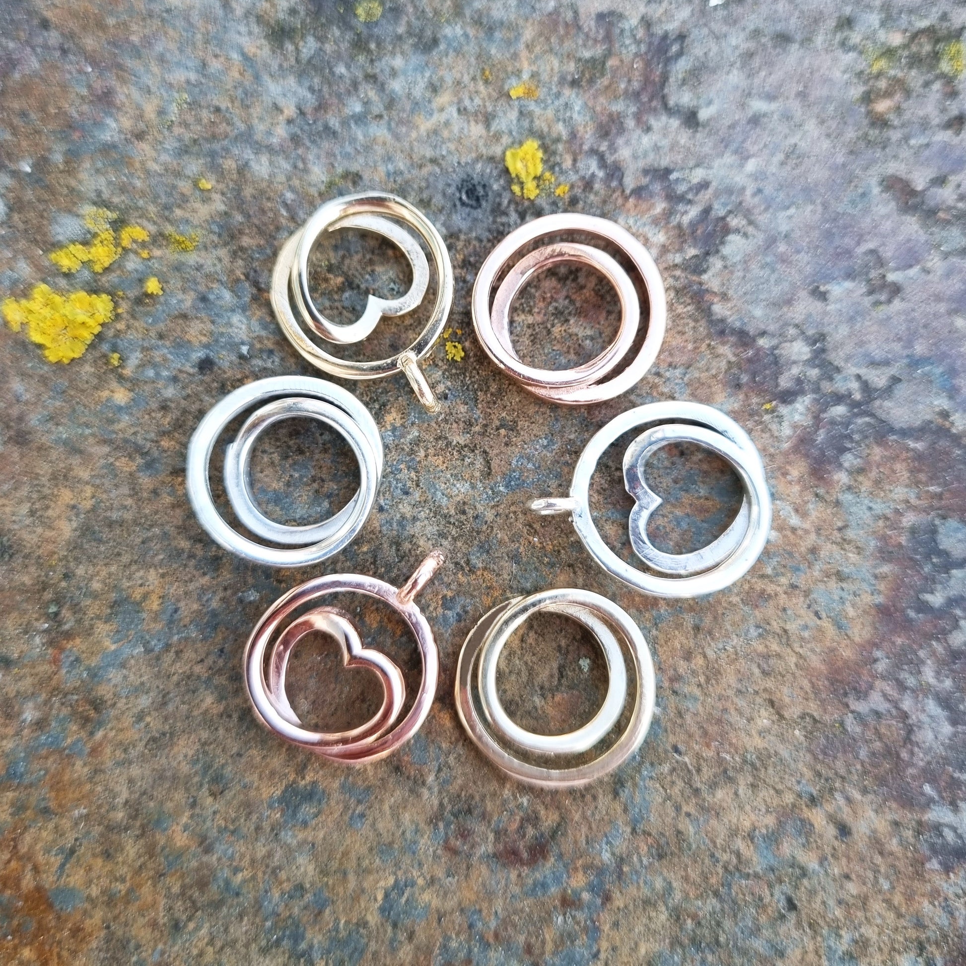 The pendant is handmade from solid 9ct gold or silver. The pendants are very similar - Infinity is made from a small circle inside a large circle in one continuous loop. Infinite Love has a heart inside the larger circle.