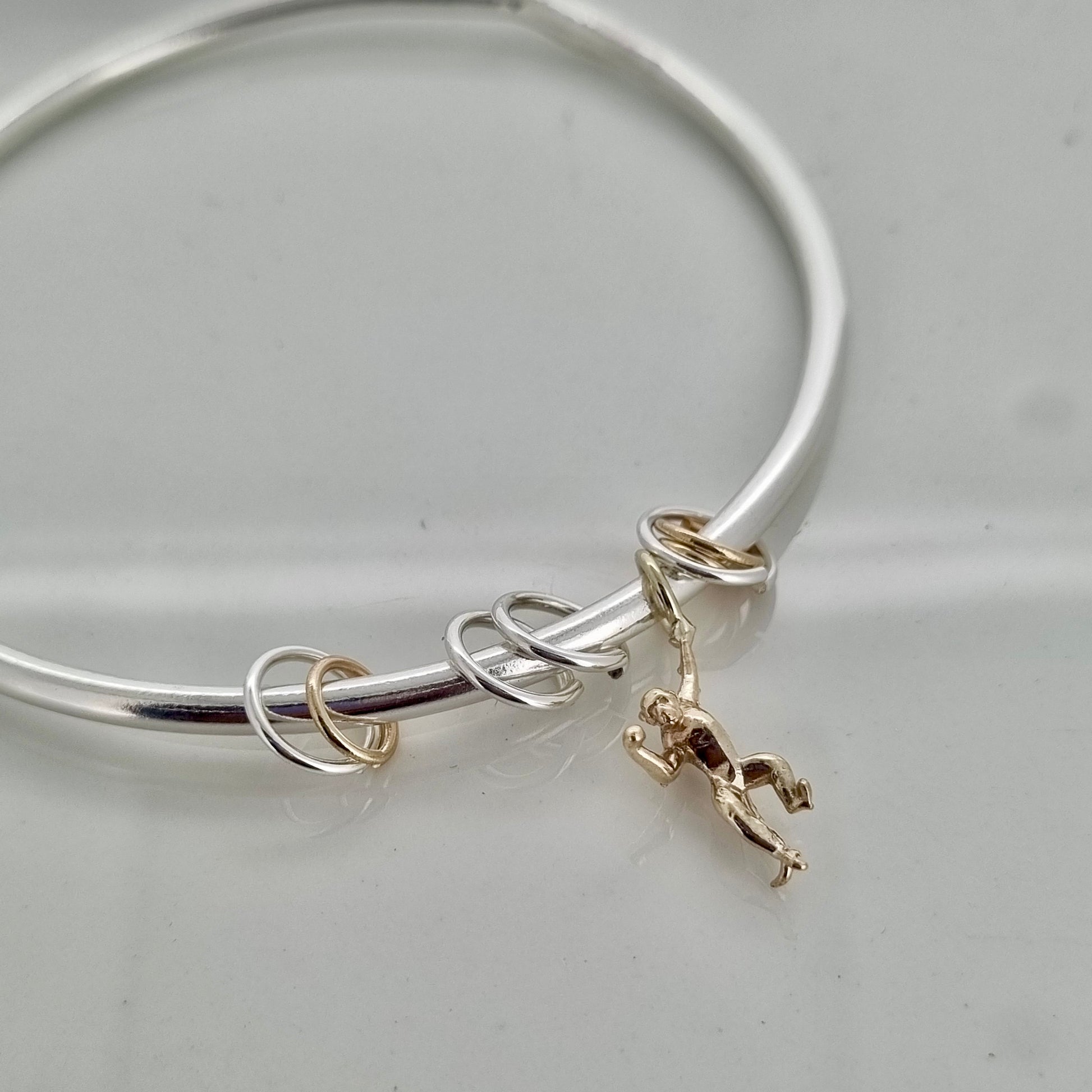 Monkey puzzle - silver bangle with gold monkey and sliding hoops