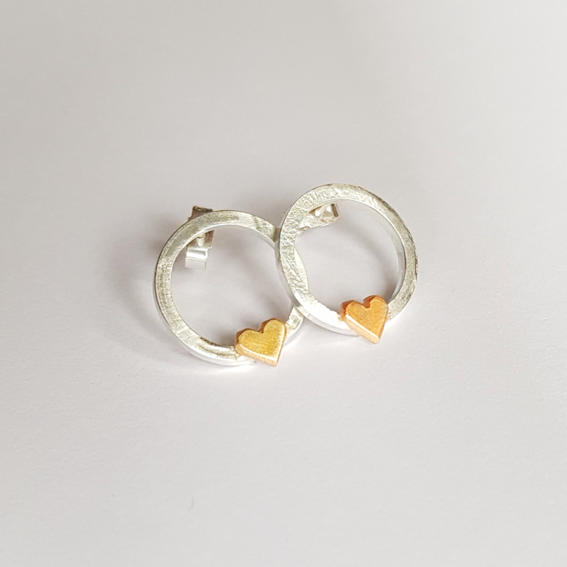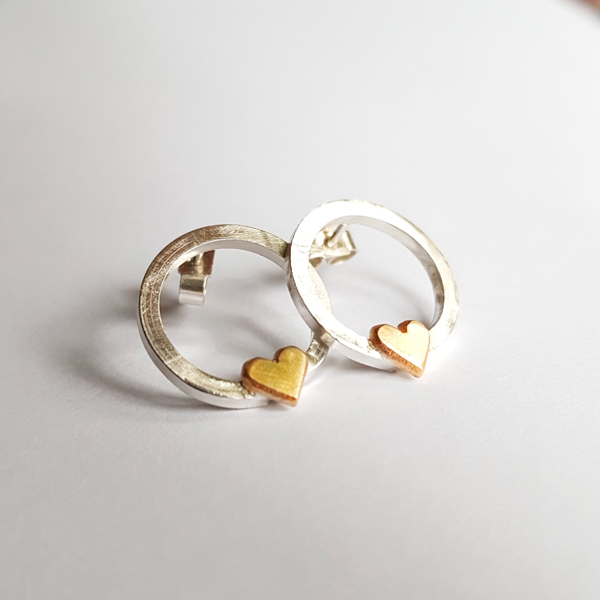 I hand hammer a halos from solid sterling silver with dimensions of 2mm deep and with a diameter of 1cm. I then adorn the halo with a gleaming heart hand sawn from solid gold. You can even add a 1.5mm diamond to the centre of the heart for a bit of extra sparkle!
