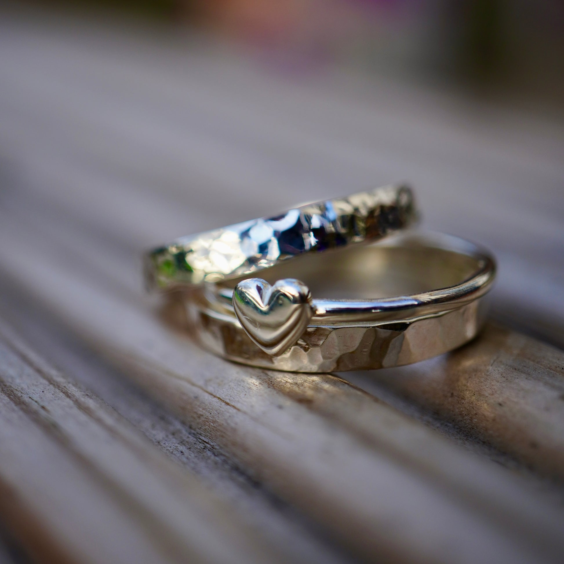 And for that extra special touch I can personalise one or both of the hammered silver bands with your special name, message or date inside. Just let me know in the 'personalisation and extra info' box when you order.