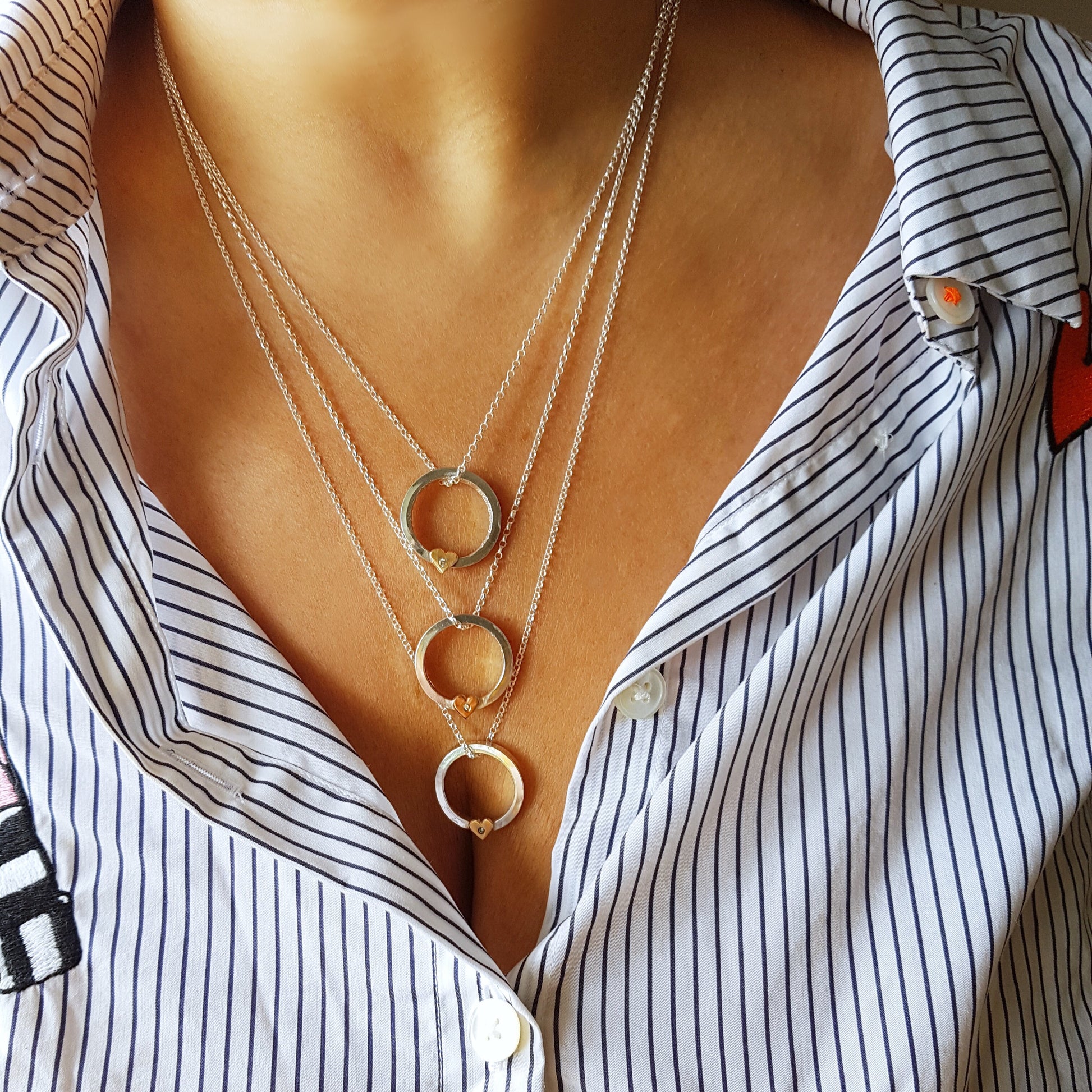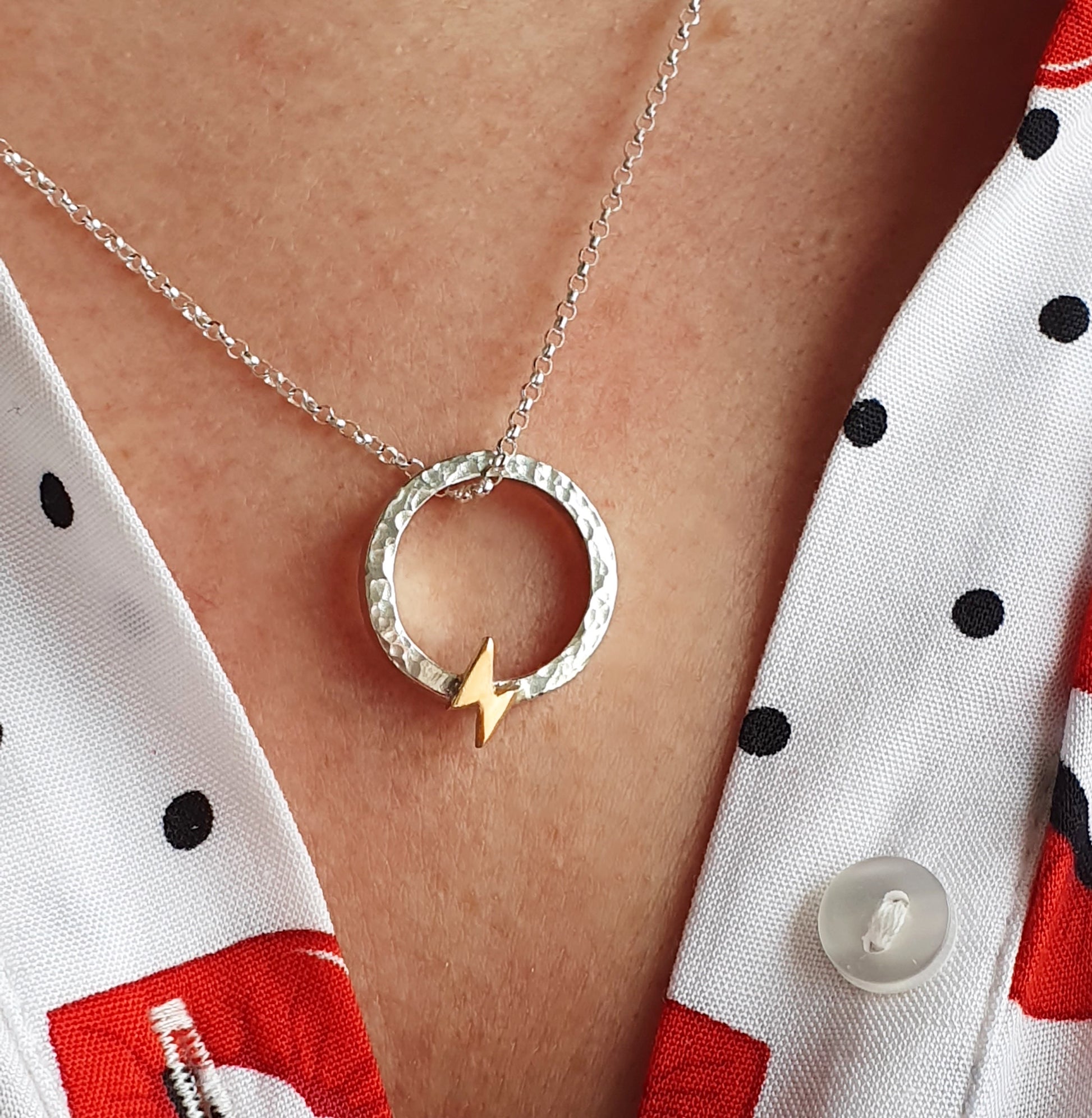 Starting off the year with a bit of "Zigazig ah", this gorgeous empowering necklace combines a solid silver halo with a cute gold bolt of lightning.