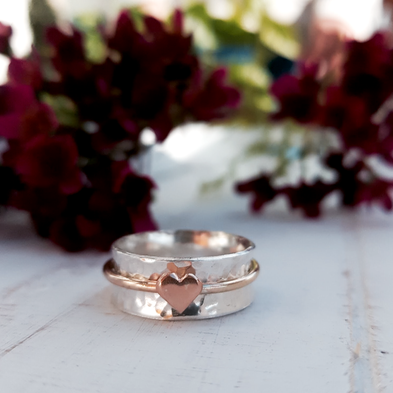 I love this special band just as it is, but some people like two or more spinning rings on the band, or with different metals. Take a look at my 'design your own spinning heart ring' listing to make your perfect ring.