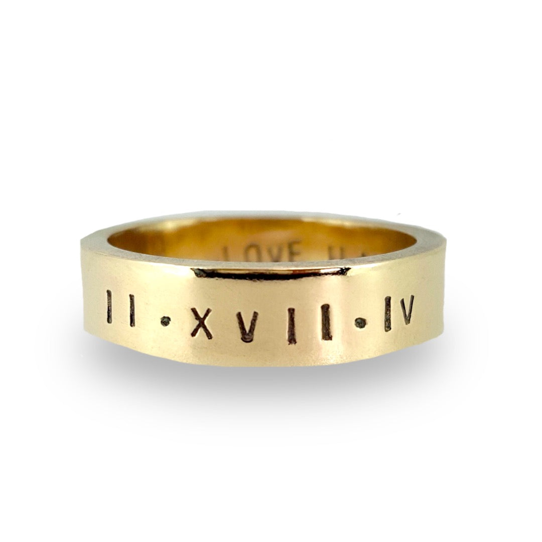 Personalised man's ring with Roman numerals. 9ct solid gold