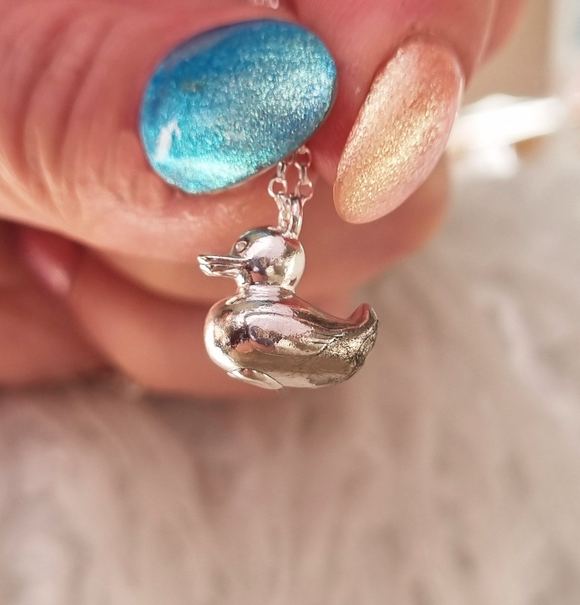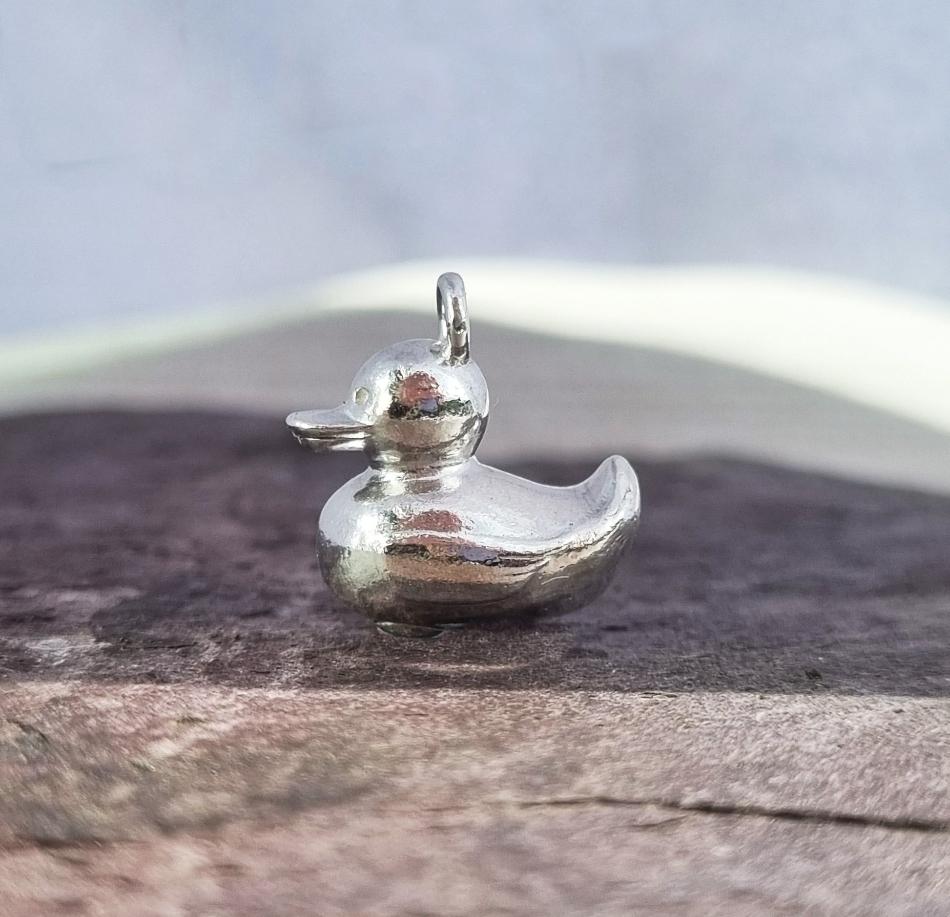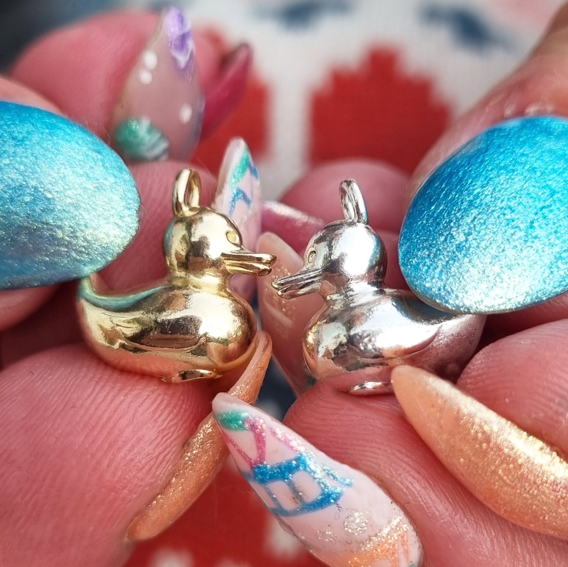 This solid silver or gold duck is nice and dainty, measuring 14mm from his beak to the tip of his tail, and weighs just over 3g.