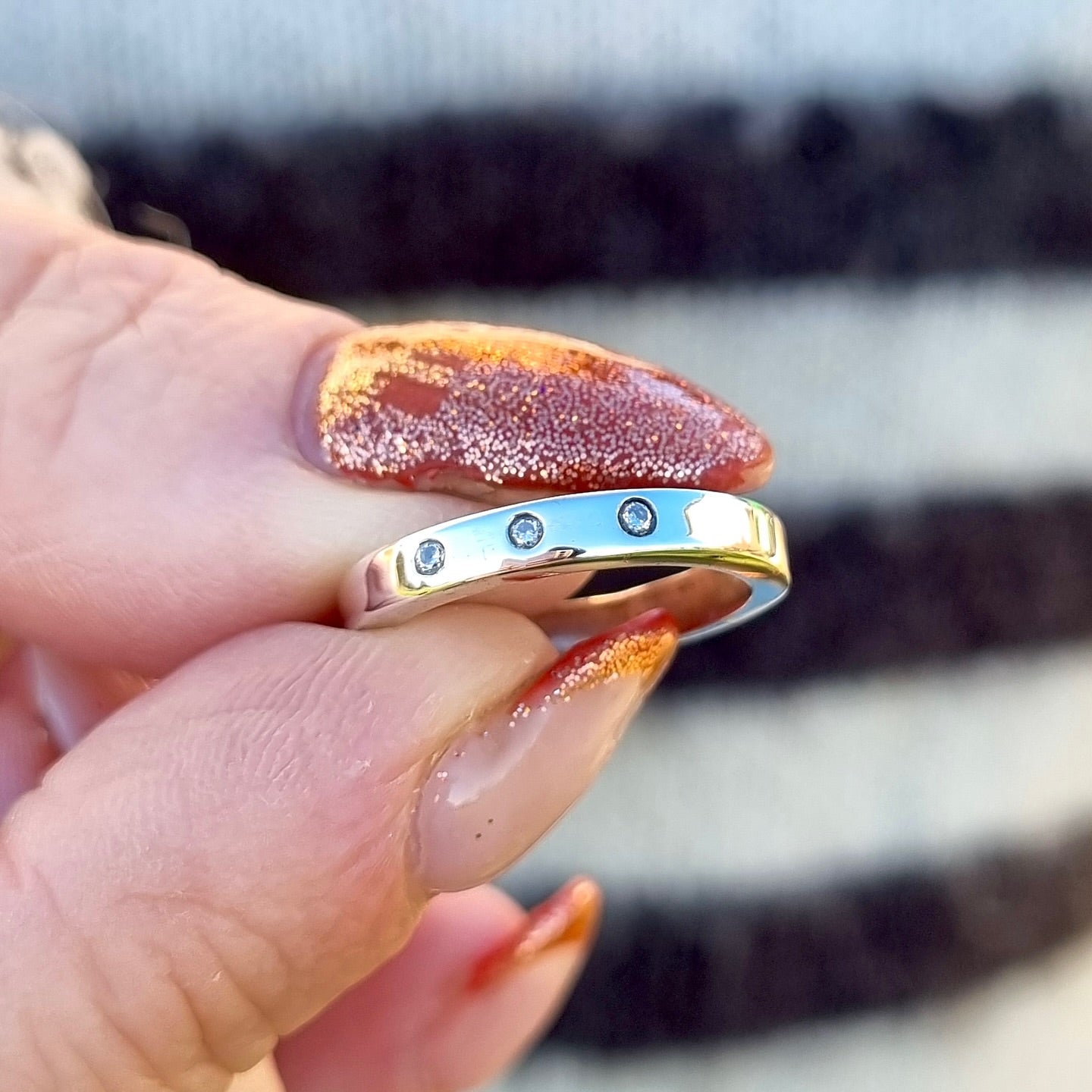 Silver band with trio of diamonds