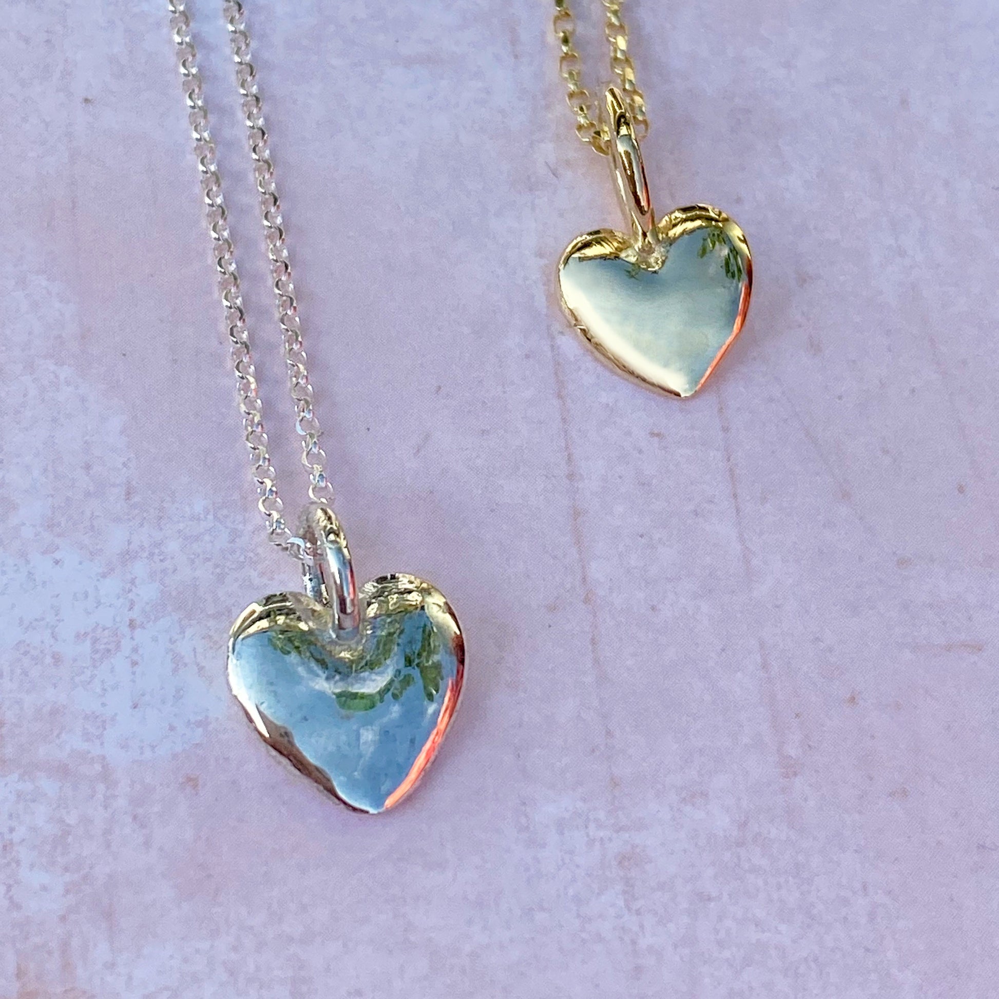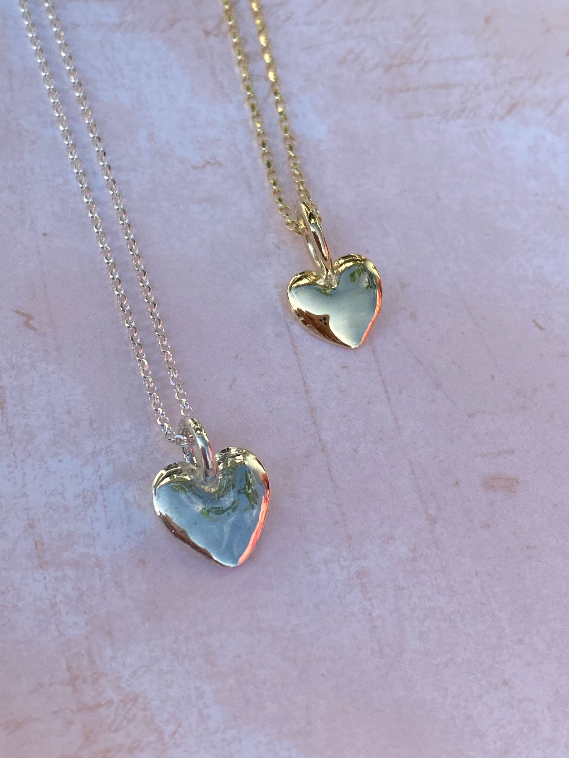 Solid silver or gold heart necklace