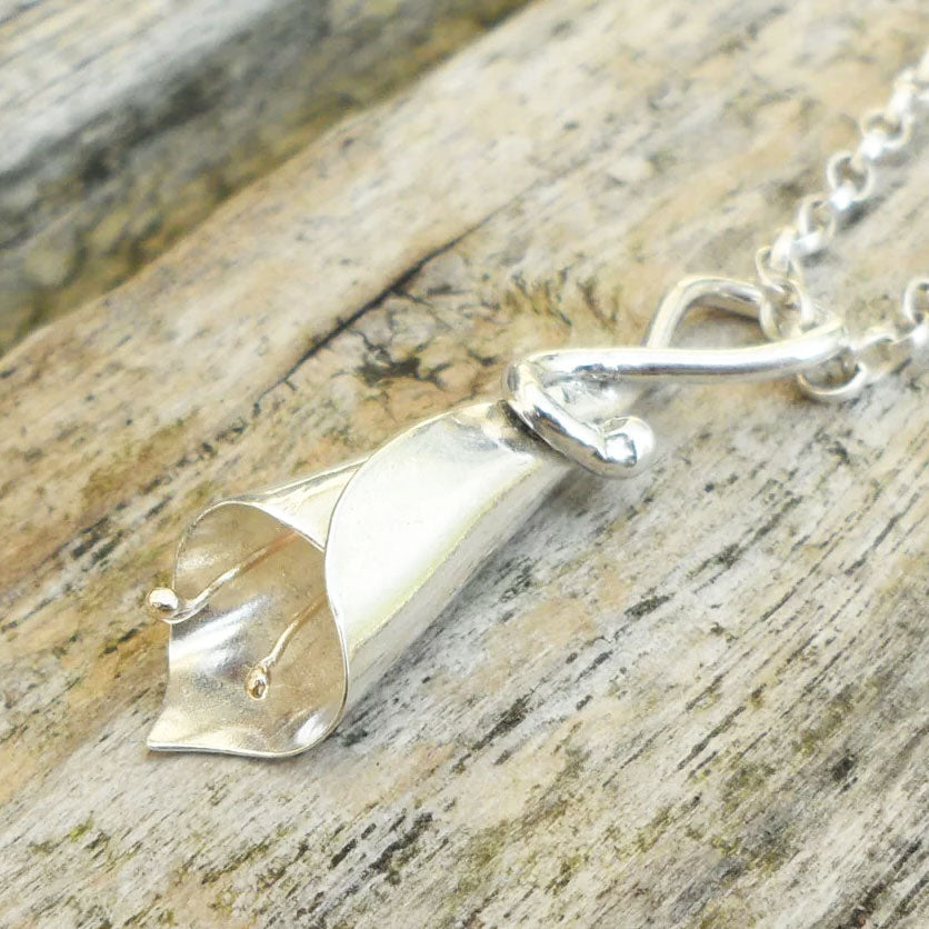 This exquisite lily necklace is handmade in my Leeds studio using time-honoured traditional silversmithing methods, so every piece is individual and unique.