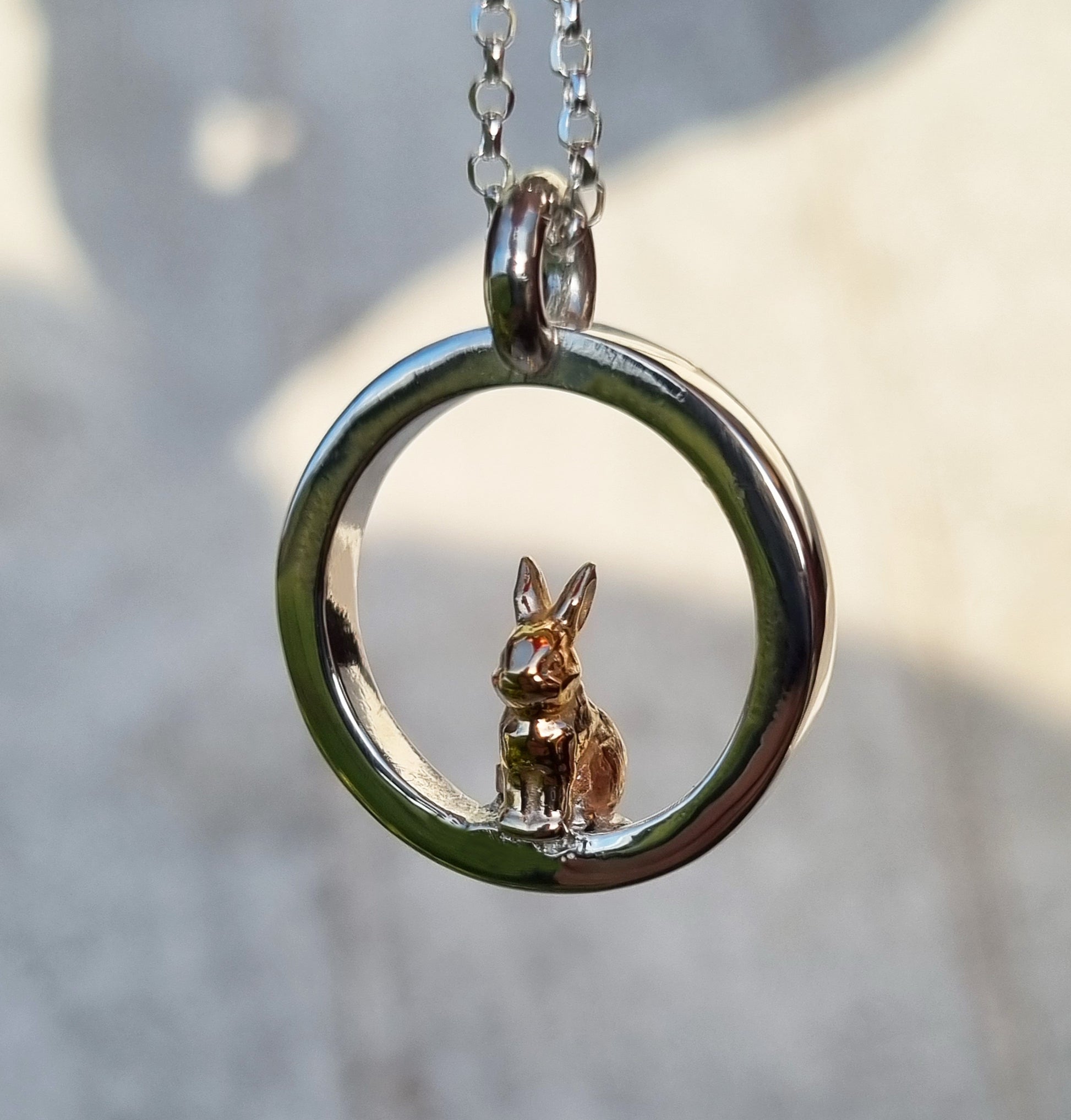 Introducing my newest whimsical masterpiece. A teeny tiny bunny rabbit, handmade from solid 9ct gold, nestled inside a solid silver halo.