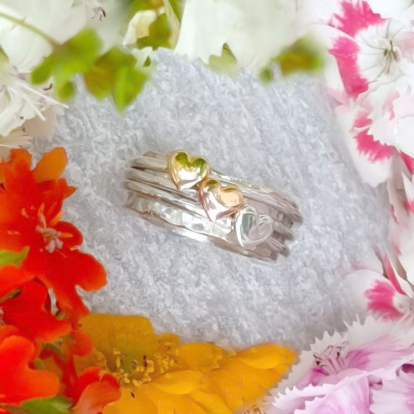 This gorgeous spinning ring has three hearts in three different colour metals - Yellow gold, Rose gold and White gold or silver. All the gold I use is solid 9ct gold.